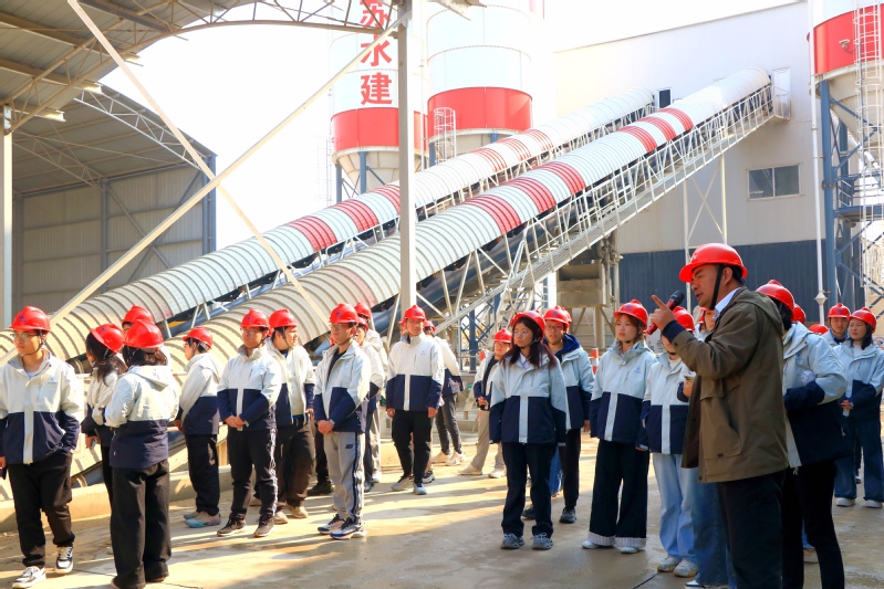 滨海水利枢纽工程是本次调研实践活动的第二站,位于入海水道与通榆河交汇处。在混凝土智慧生产中心,现场工程师介绍了基于物联网传感器的混凝土实时监测与智能温控系统。同学们了解到,通过动态调整物料配比,不仅能保障工程质量,也实现了成本精细化管理,对“智慧水利”有了更具体的理解。
