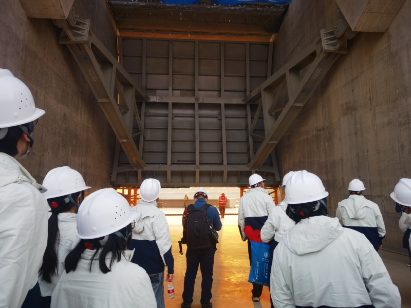 在最后一站二河水利枢纽,同学们实地察看了进洪越闸等施工现场。现场工程师们围绕水闸基本组成、施工顺序、工程施工难题与技术突破与同学们进行深入的交流互动,并鼓励同学们在今后的科研与工程实践中“学思践悟、总结创新”。